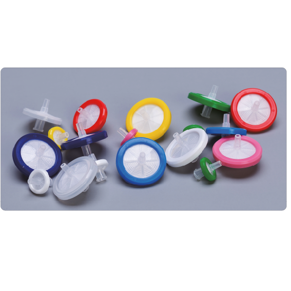 - 8 типов мембран: PVDF (синие), PES (зеленые), MCE (желтые), NYLON (розовые), PTFE (белые), CA (красные), SFCA (темно-синие), GF+CA – состоит из 2-х фильтров: префильтра из стекловолокна и ацетат целлюлозного фильтр (прозрачные)